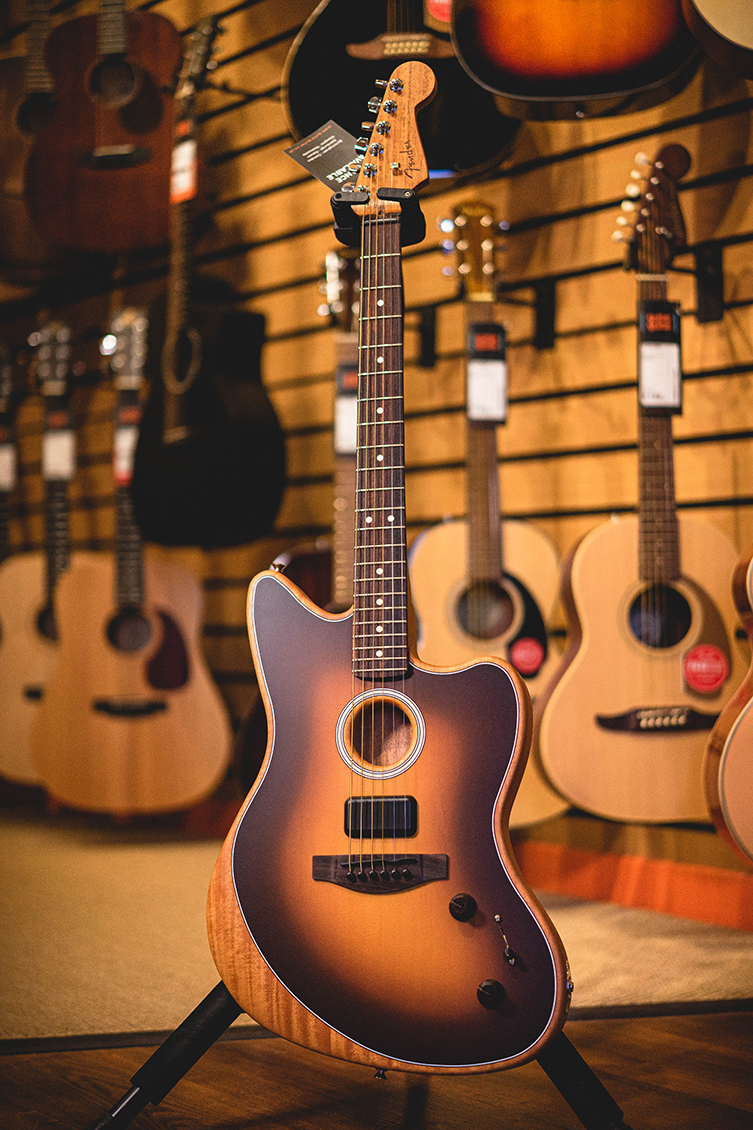 The Acoustasonic is a very useful and inspiring instrument for creative songwriters. Available in various Fender electric guitar shapes, I went for the Jazzmaster one, chiefly for the position of the soundhole: it makes for the best sound, if you ask me!